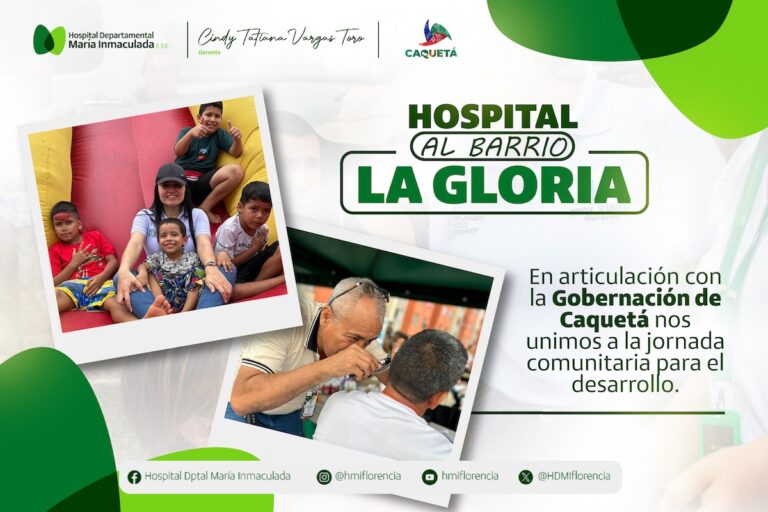 👩🏽⚕️👨🏻⚕️En el marco de nuestra estrategia Hospital al Barrio, realizamos una exitosa jornada integral de atención en salud en el barrio La Gloria de Florencia, acercando nuestros servicios a quienes más lo necesitan y reafirmando nuestro compromiso con el bienestar de la comunidad. Esta actividad fue posible gracias al trabajo articulado con la Gobernación de Caquetá y la Secretaría de Salud Departamental, sumando esfuerzos para garantizar una atención oportuna, humanizada y de calidad. De manera fácil y segura los usuarios